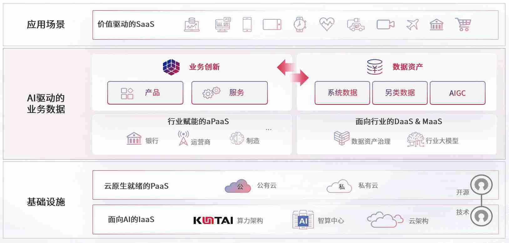 数字时代,,,,围绕企业数字化转型的关键要素,,GGPOKER数码开创性的提出数云融合战略和技术体系框架,,,,着力在云原生、、、数字原生、、、AI原生和信创产业上架构产品和服务能力,,为处在不同数字化转型阶段的快消零售、、、汽车、、、金融、、、医疗、、、政企、、教育、、、、运营商等行业客户提供泛在的敏捷IT能力和融合的数据驱动能力,,,,构建跨界融合创新的数字业务场景和新业务模式,,助力企业级客户建立面向未来的核心能力和竞争优势,,,全面推动社会的数字化、、智能化转型升级。。